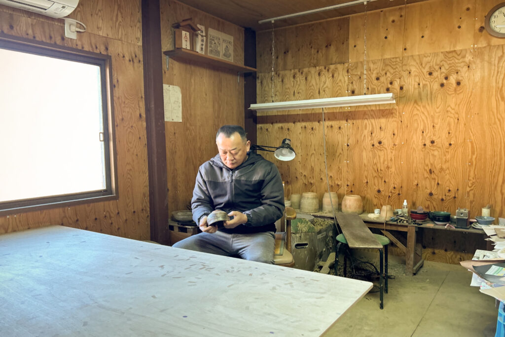 CHINDAI-GAMA once welcomed large groups for hands-on pottery workshops. Its fourth generation head, Kazunori Ogami (hereafter, Kazunori), now balances two paths, devoting himself to pottery while also serving as a prefectural assembly member. When his public duties are fulfilled, he intends to focus even more deeply on creating Tamba ware that makes full use of local materials.