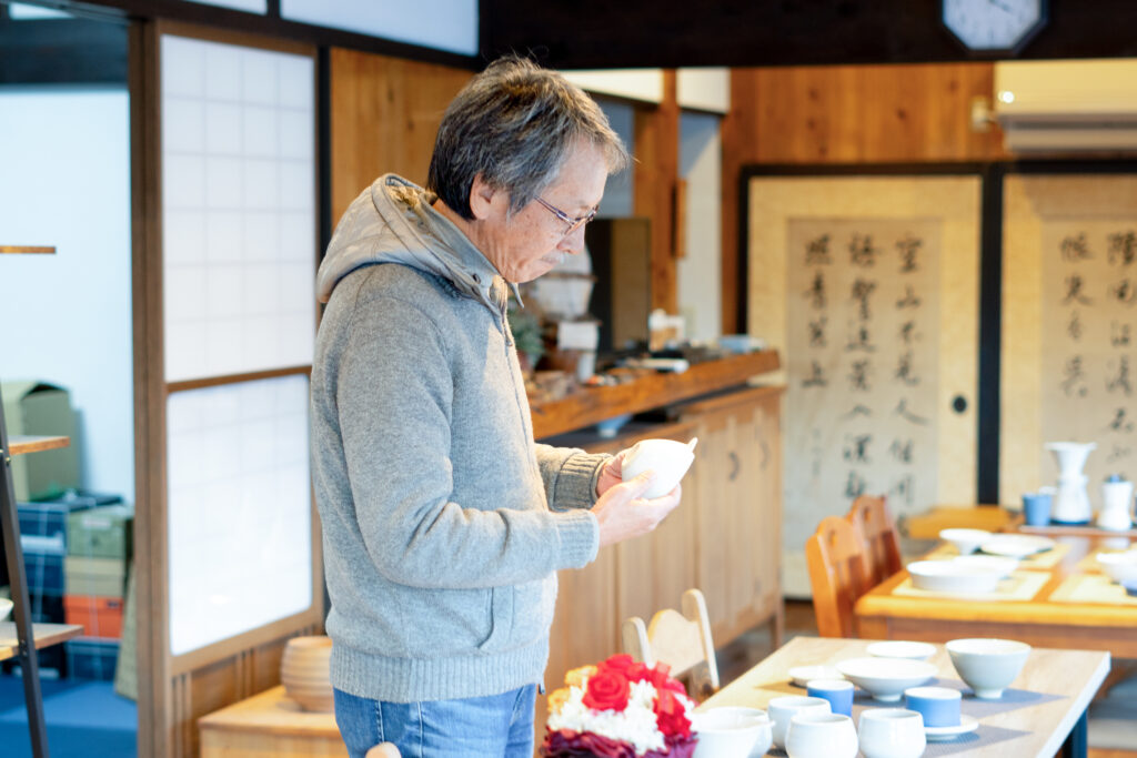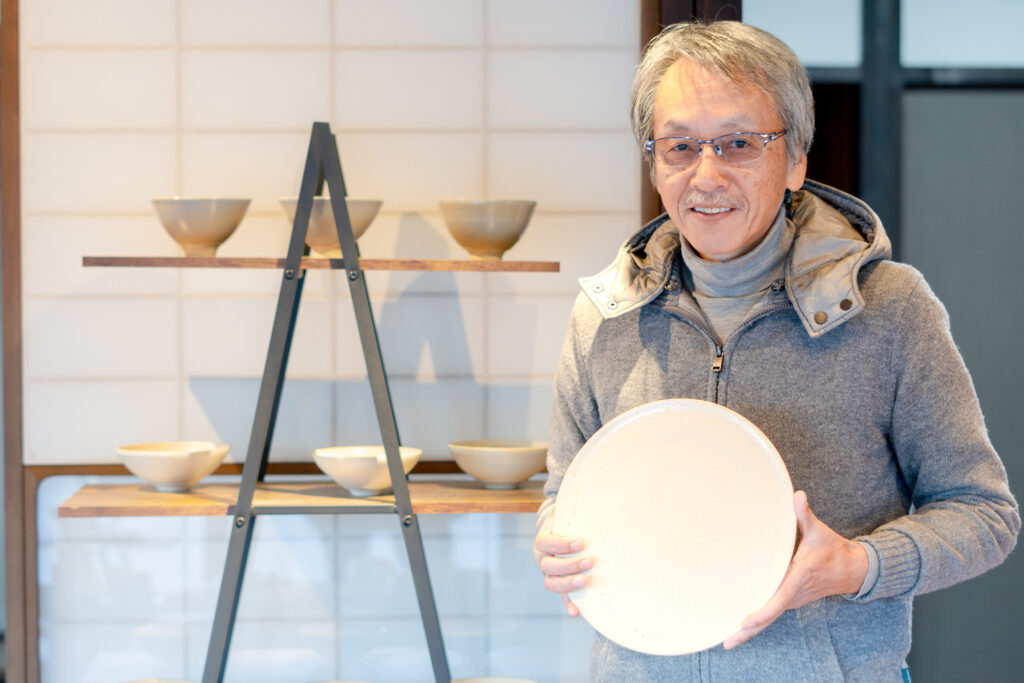 For the ten years leading up to retirement, he attended a pottery class once a week while continuing his full-time job. Reconnecting with clay—hand-building and throwing pieces on the wheel—he rediscovered the joy of ceramics. In 2020, upon reaching retirement, he returned to his hometown of Shimotachikui for the first time in 42 years and resumed pottery in earnest in his father’s former studio.