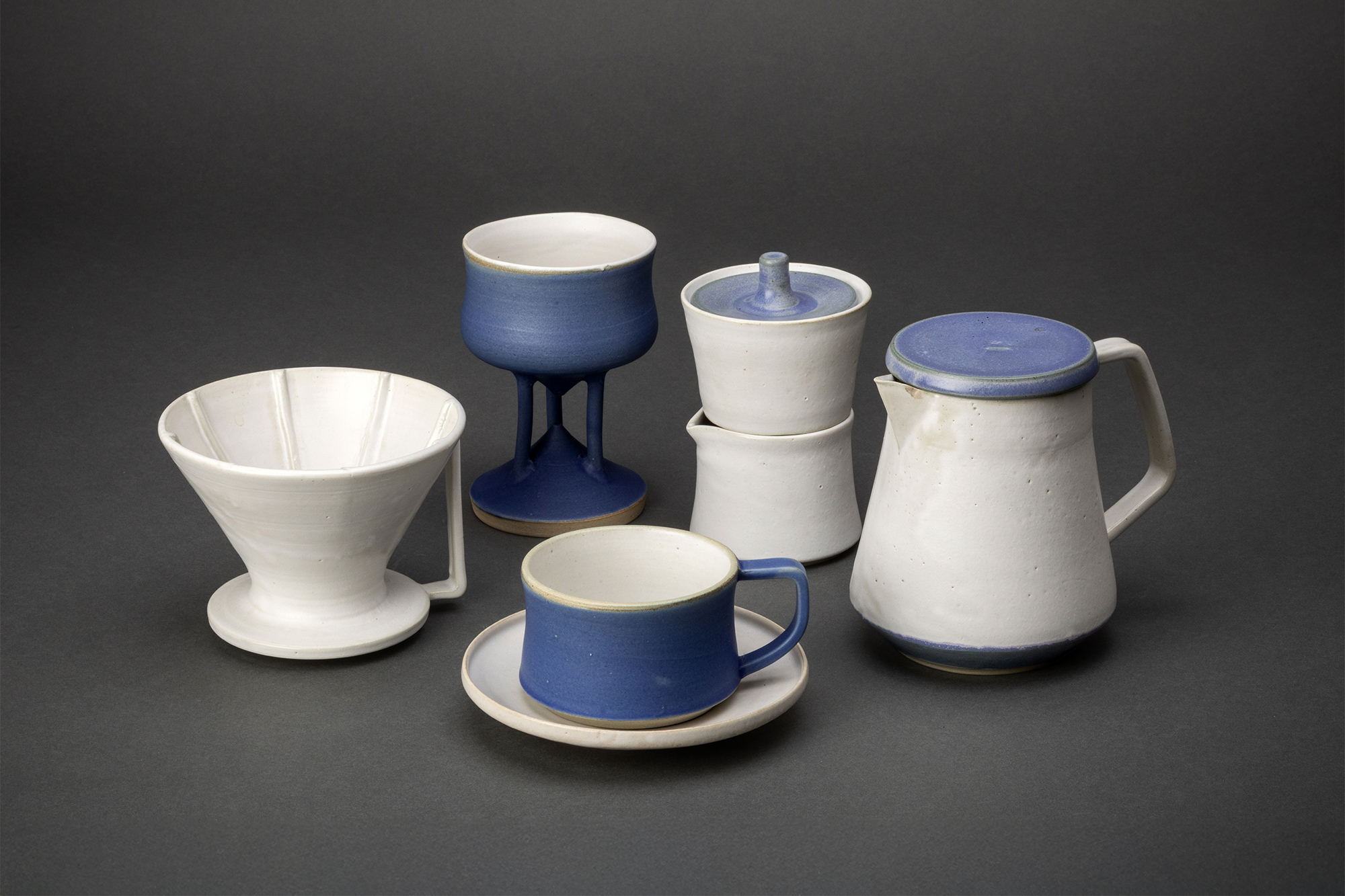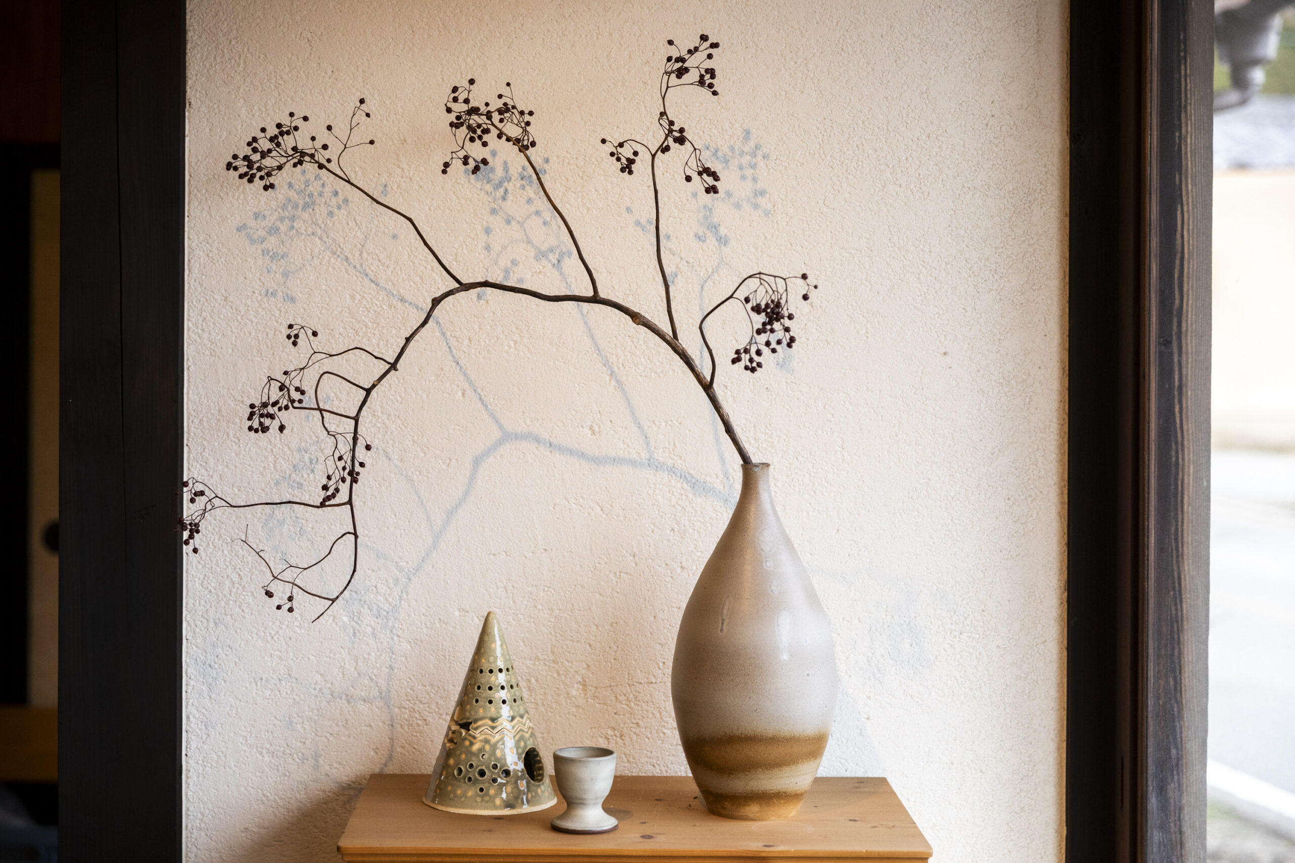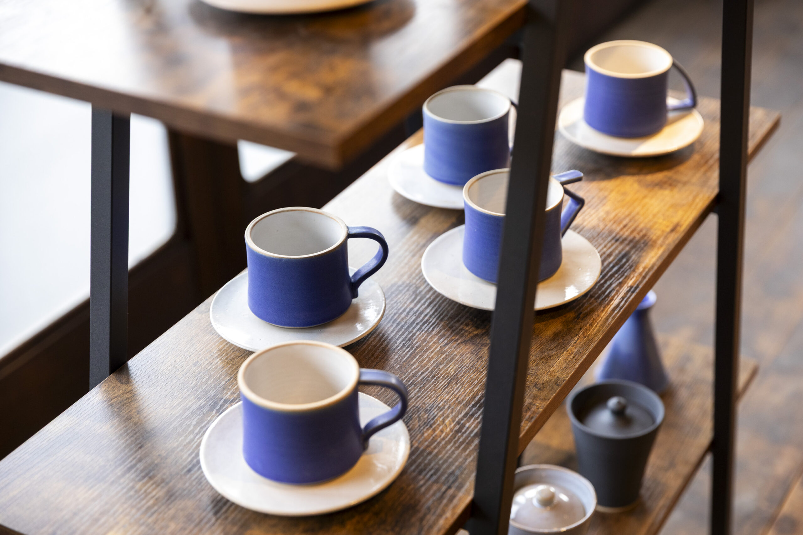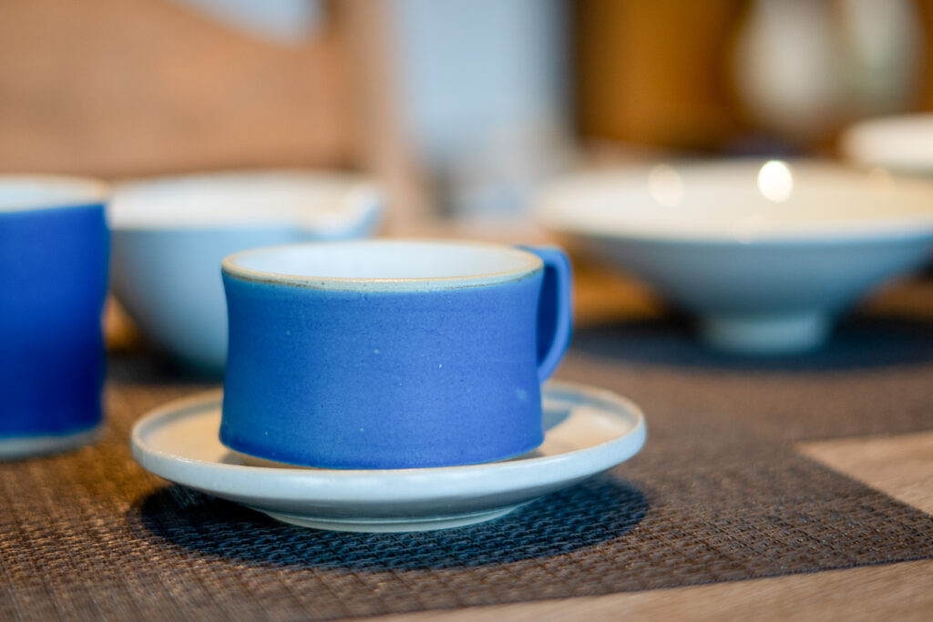 Hiroo’s work is characterized by a modern style reminiscent of Scandinavian design, with matte blues and whites that immediately catch the eye. He says the interiors he encountered during a visit to Denmark left a deep impression on him. Unlike the unglazed, high-fired pieces and red-clay works created by the previous generation in the tradition of Tamba ware, his aim is to craft forms that gently add a sense of calm or subtle stimulation to everyday life—pieces that feel natural and comfortable in the hand.