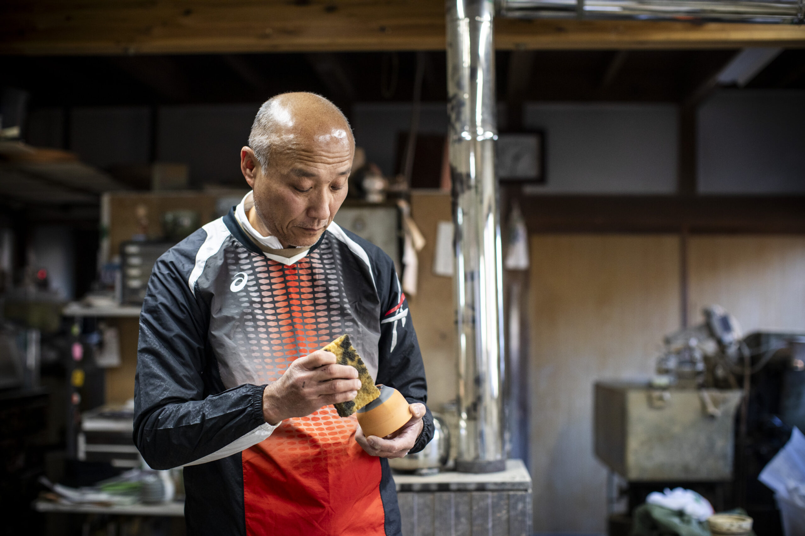 He loved physical activity and devoted himself to track and field throughout junior high and high school. He even requested application forms for a sports university and began preparing. In his sixth-grade graduation essay he wrote that he would take over the family business, but in truth he wanted to become a PE teacher. “At the time, I really didn’t want to do it,” he recalls. Still, telling himself it was his destiny, he changed course and entered the ceramics program at an art university in Kyoto.