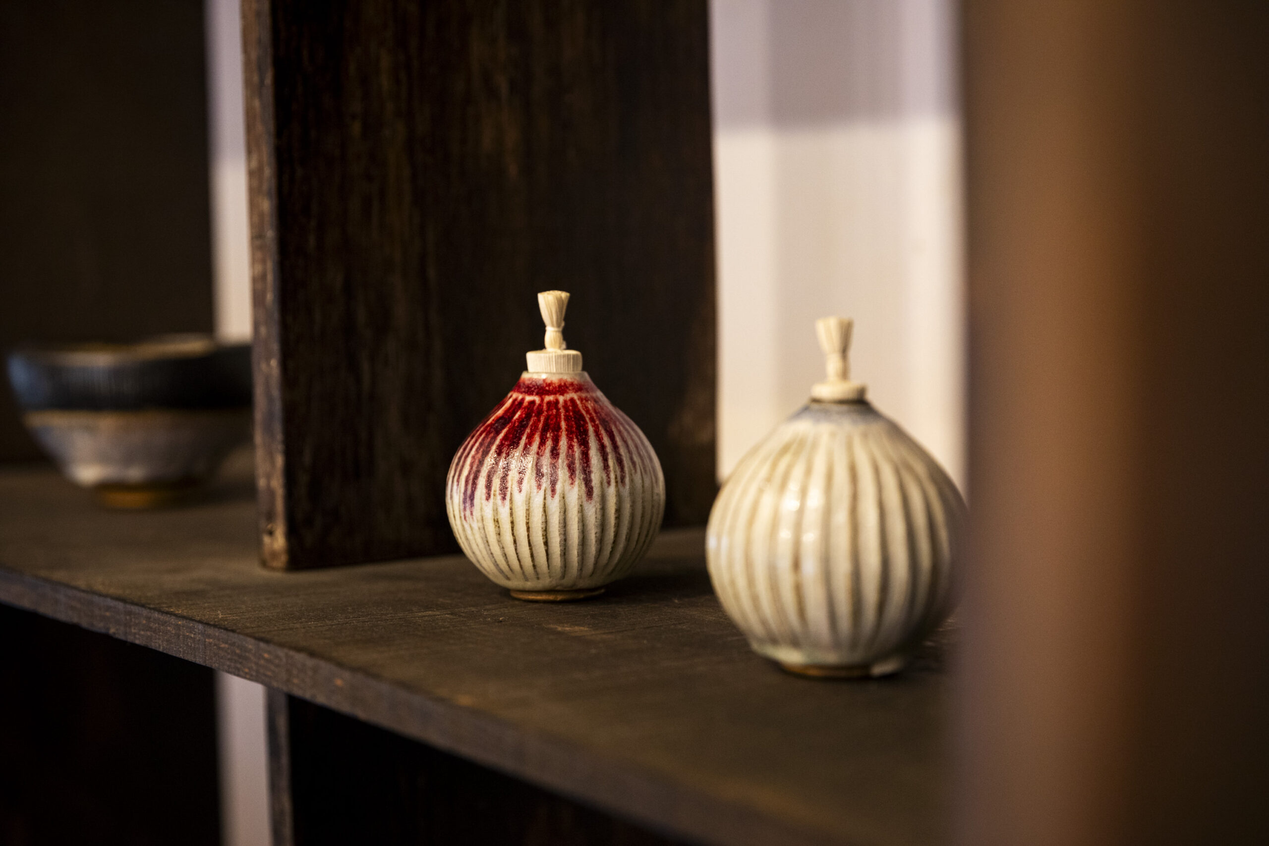 These pieces are records of “phenomena” captured in clay by Nakaoka Nobuto of SHINRIN-GAMA, born from the interplay of Earth’s gravity, the kiln’s flames, and chance.