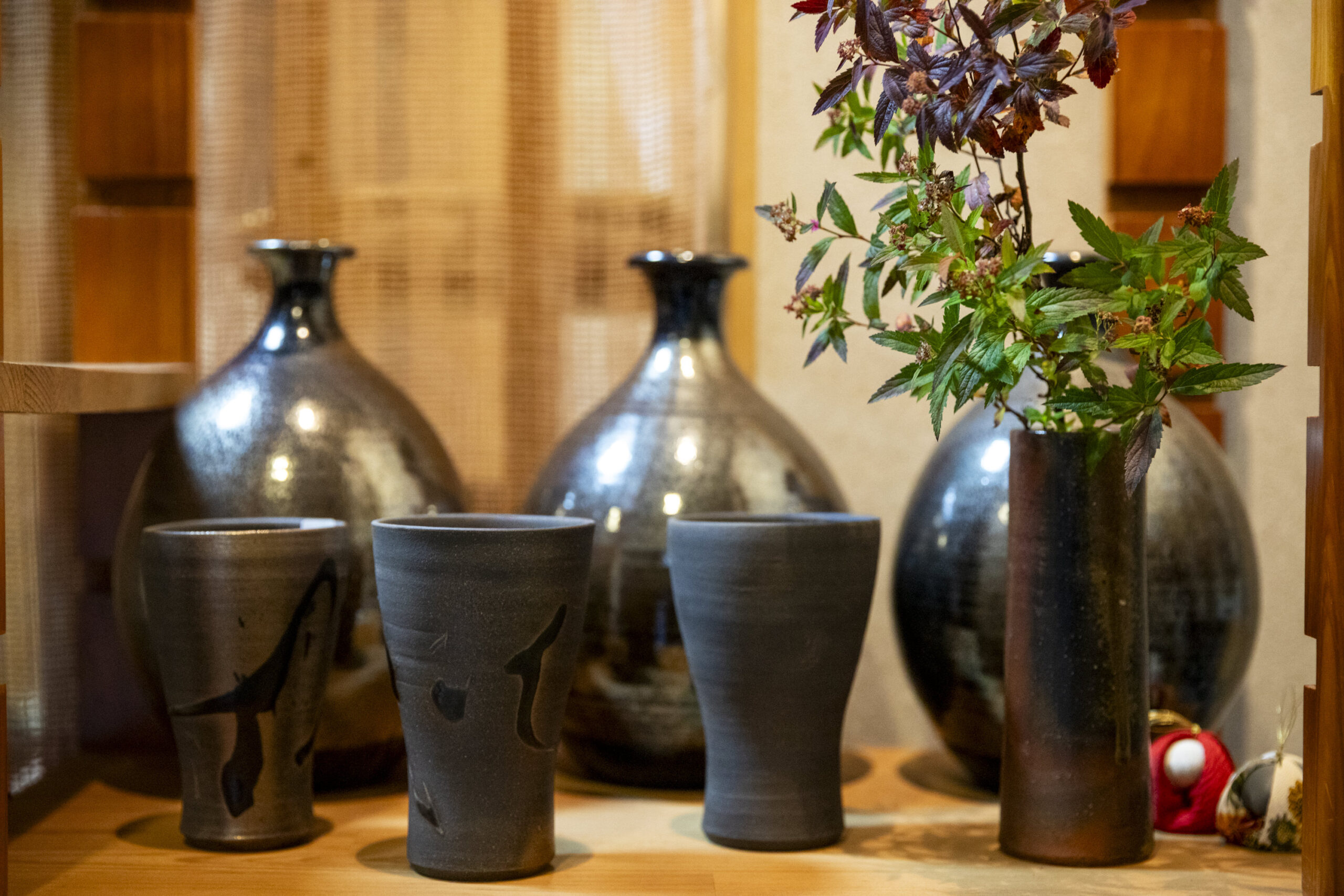 Stepping inside and opening the door, one first notices a rounded back bent intently over the wheel. It is Akiyoshi Shimizu, second generation head of TANKYO-GAMA. While incorporating traditional techniques of Tamba ware, he continues to create forms that feel light, approachable, and naturally at home on today’s dining tables.