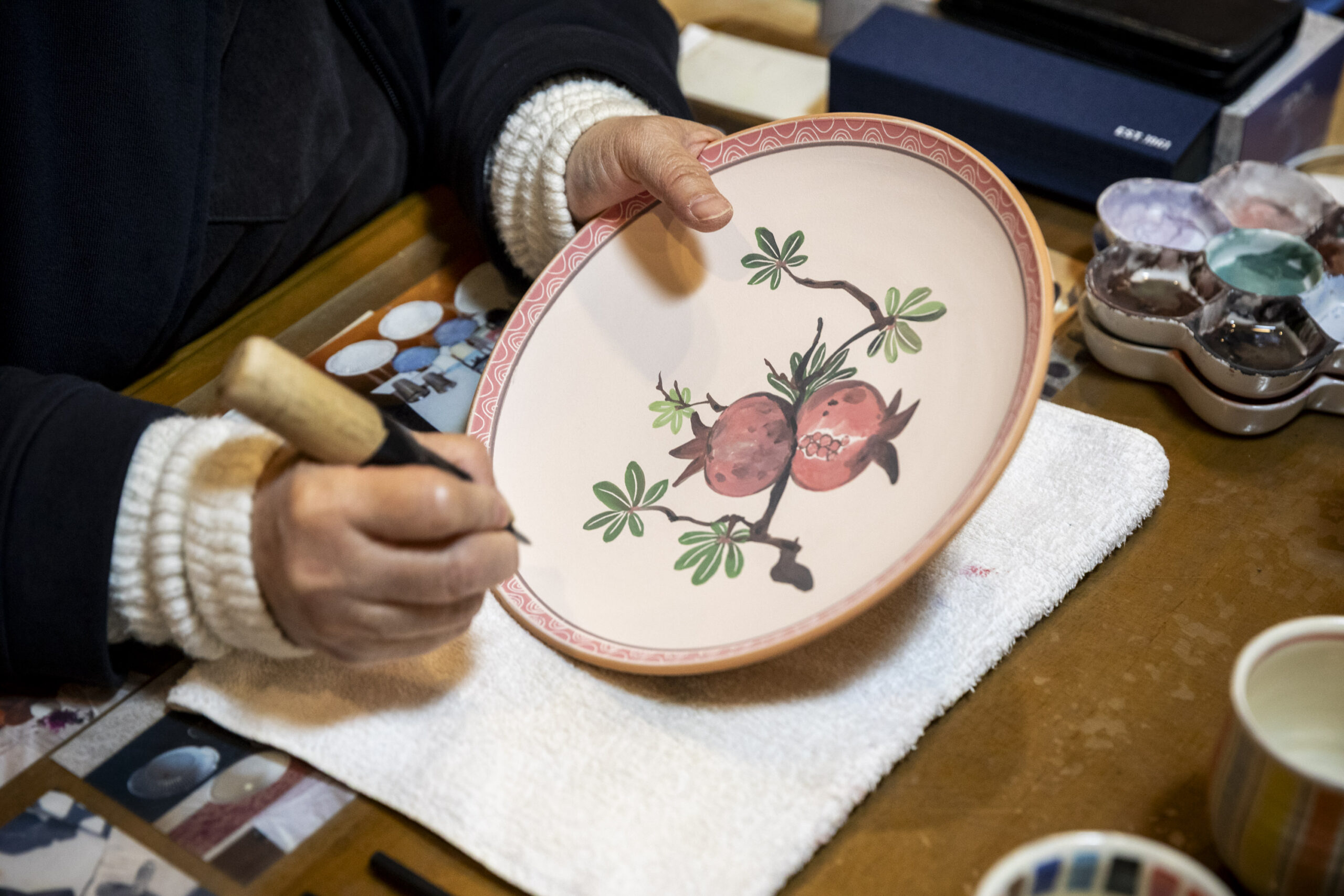 Shrimp in the Traditional “Itchin” Technique and Soft Hand-Painted Designs — Akiyoshi Shimizu of TANKYO-GAMA Transforms His Romantic Vision of the Climbing Kiln into Everyday Tableware