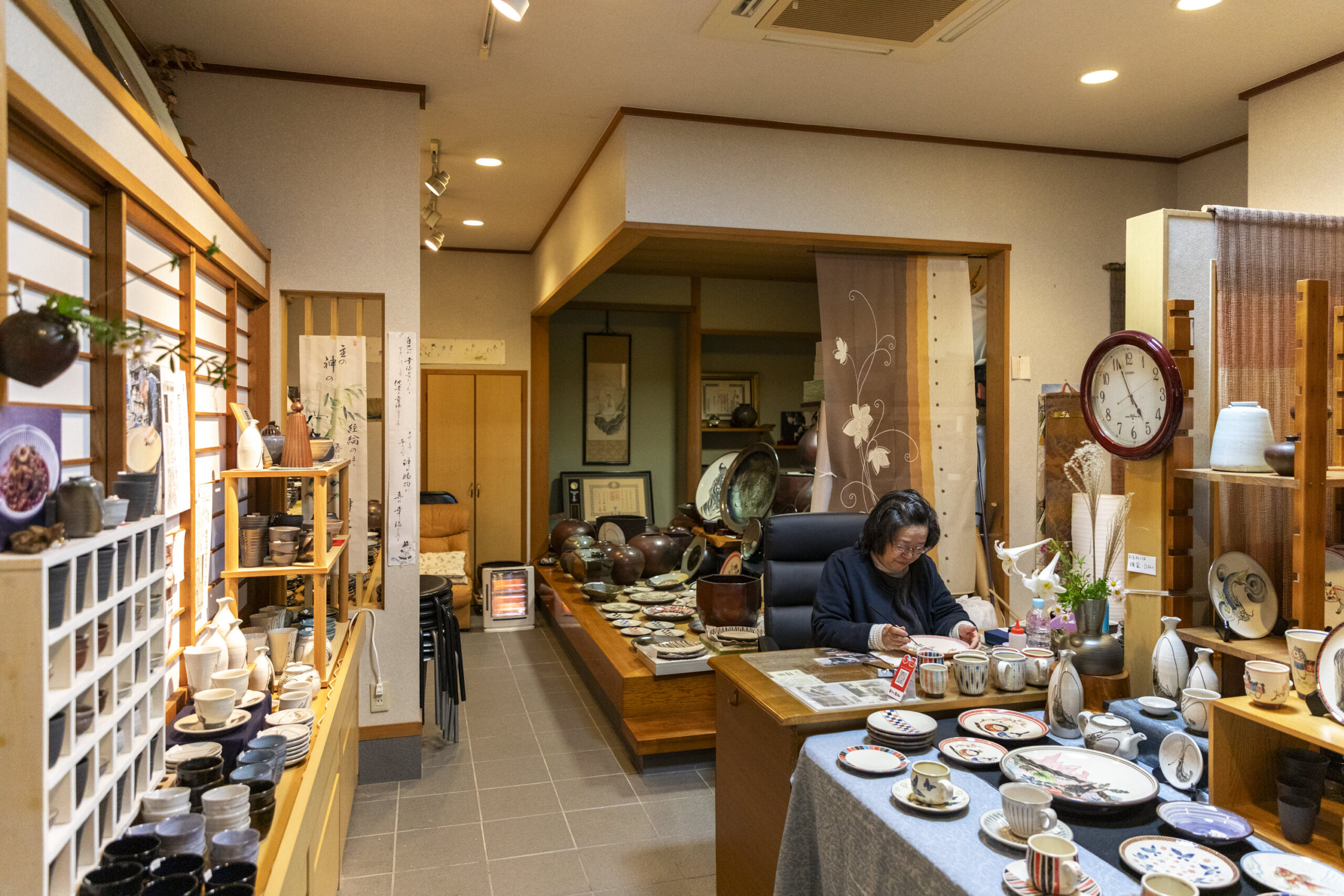 In the past, smoke from burning pine logs rose from kilns all across Tachikui, forming a landscape unique to this pottery village. Such scenes are now less common. Still, Shimizu treasures what he calls the very “atmosphere of the production area.”