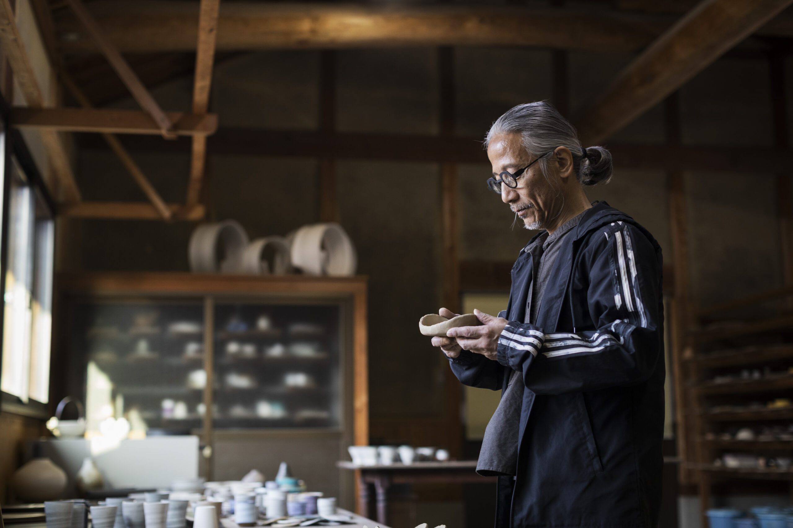 After graduating from high school, he moved to Kyoto and spent eight years studying and training in ceramics. For the first two years, he was more focused on enjoying life on his own than on his craft. Then one day, a thought surfaced: I can’t just remain unable to do this forever.
