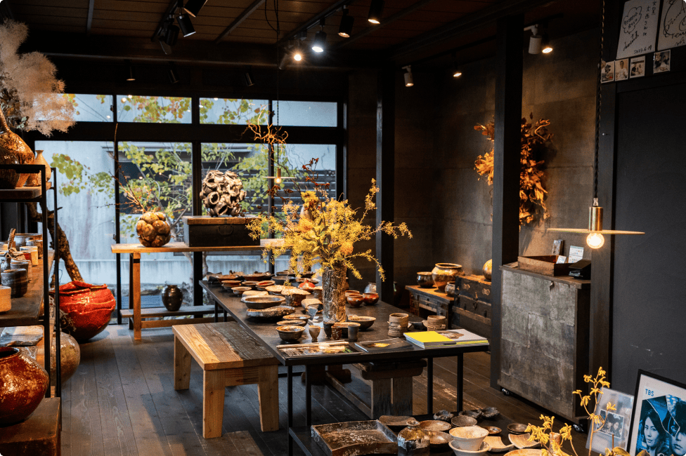 Tachikui, the town of Tamba wareIn Tachikake, the home of Tamba pottery with a history of 850 years, there are many potteries that continue to carry on the tradition of pottery making. The longest-established pottery family has a history of xxx years, and is now in its xxth generation.