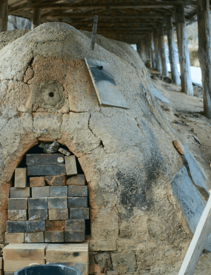 In Tachikui, the oldest surviving Tamba Ware climbing kiln, built in 1895, preserves the firing techniques and the appearance of the kiln site from that time. The kiln has been repaired by craftsmen whenever deterioration occurred and remains in active use. It is a valuable relic where visitors can feel the weight of history.